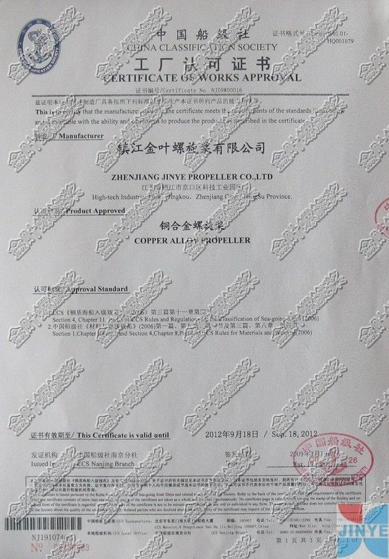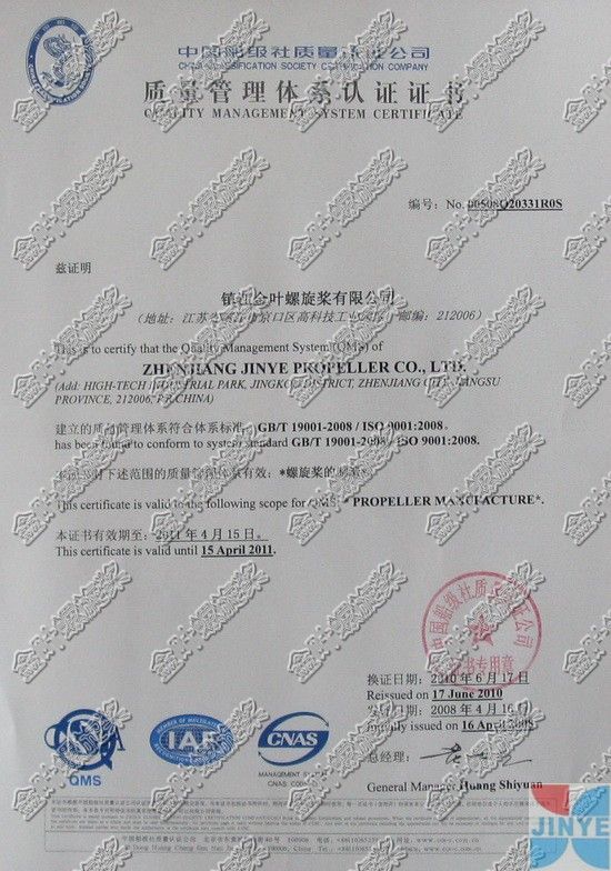 名稱:鎮(zhèn)江金葉螺旋槳有限公司 地址:江蘇省鎮(zhèn)江市京口區(qū)高科技工業(yè)園區(qū) 聯(lián)系人:何先生 手機:13906103031 電話:+86-0511-85329908 傳真:+86-0511-85329898 郵箱:hfm@jinyepropeller.com 網(wǎng)址:http://www.zjjypp.cn/